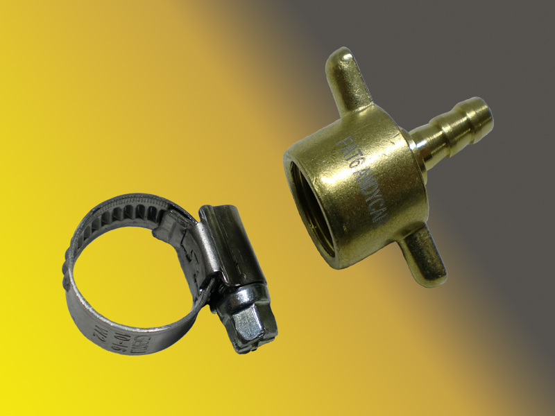 Быстросъемные наконечники с нержавеющими хомутами под шланги диаметрами 6, 8 и 10 мм.